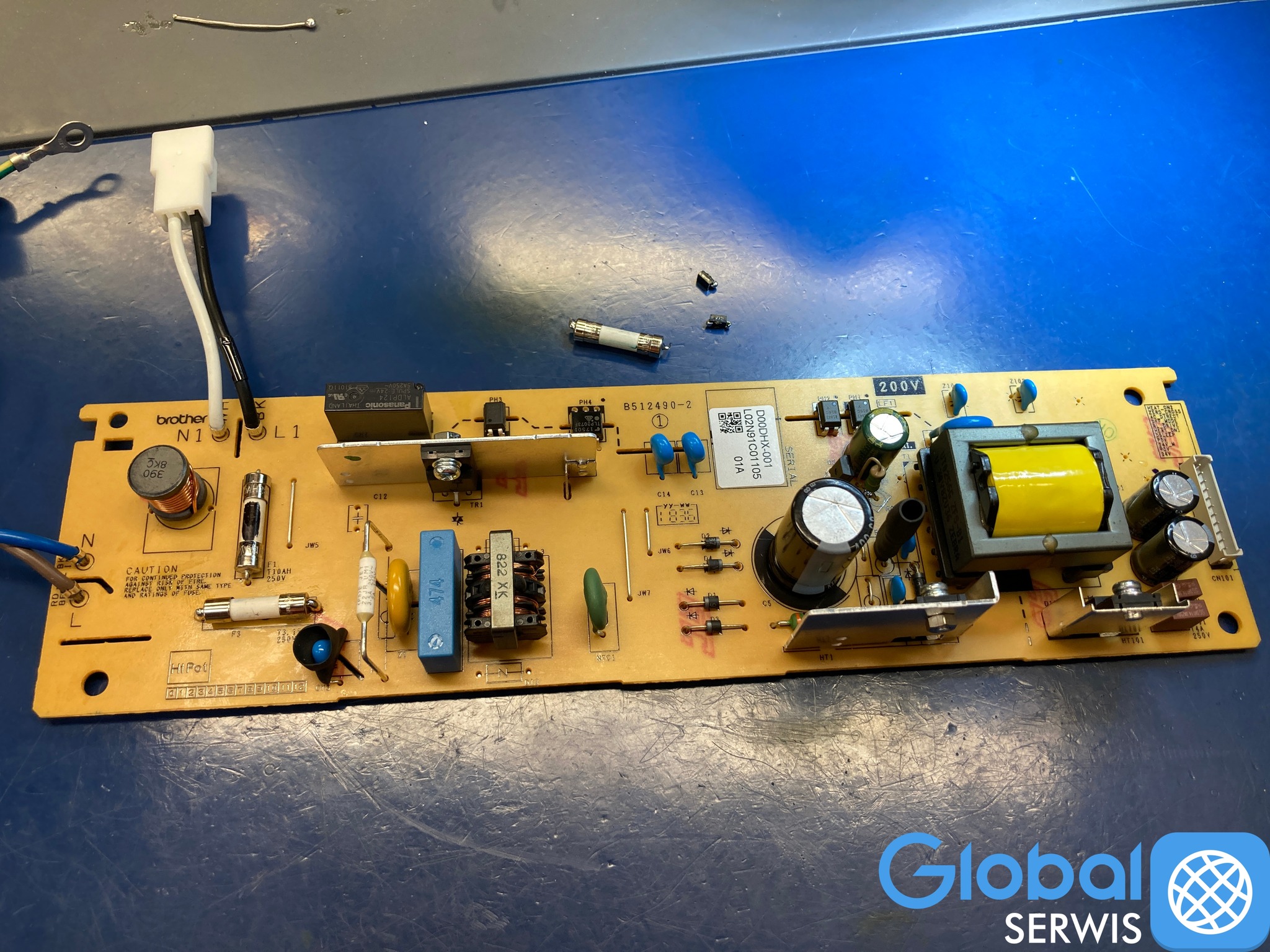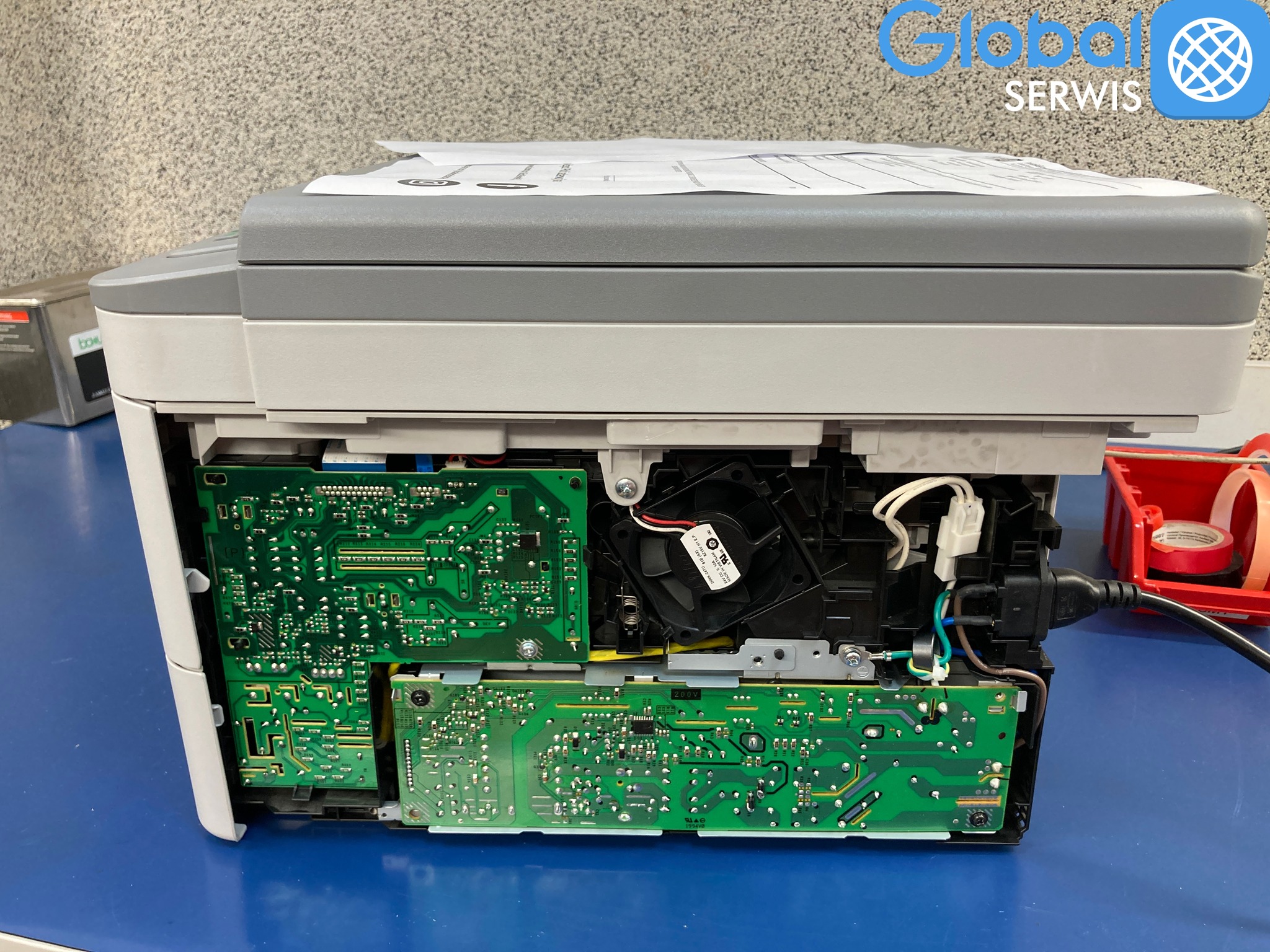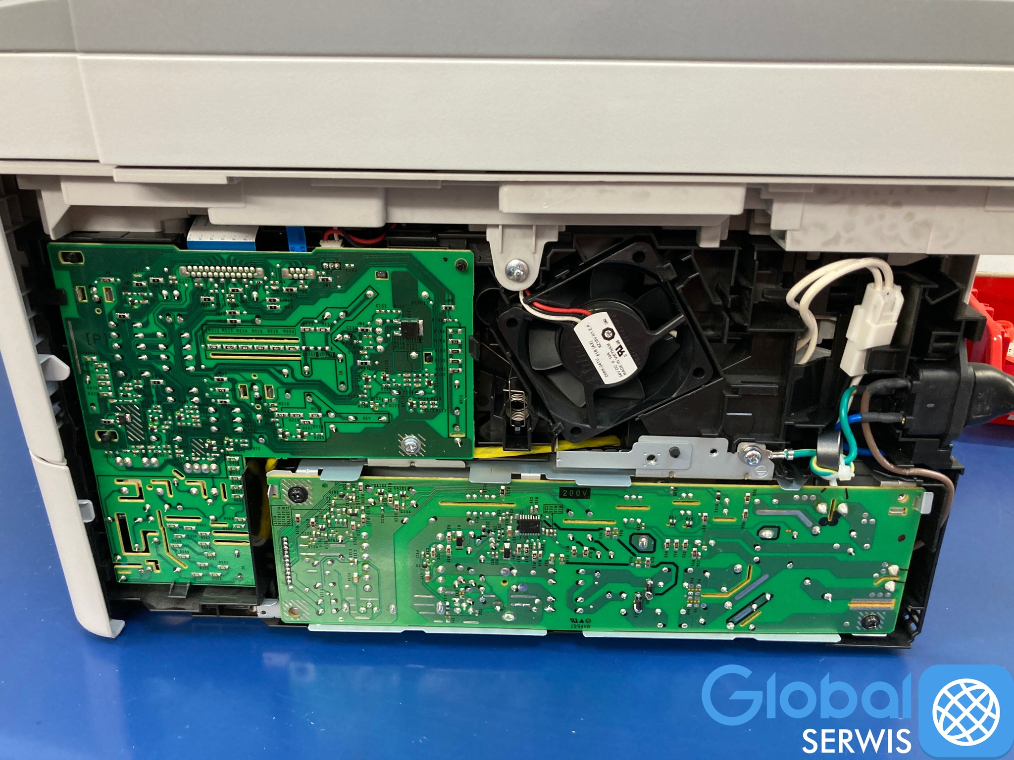 Naprawa polegała na lokalizacji usterki, która mieściła się w zasilaczu wbudowanym w korpus drukarki.