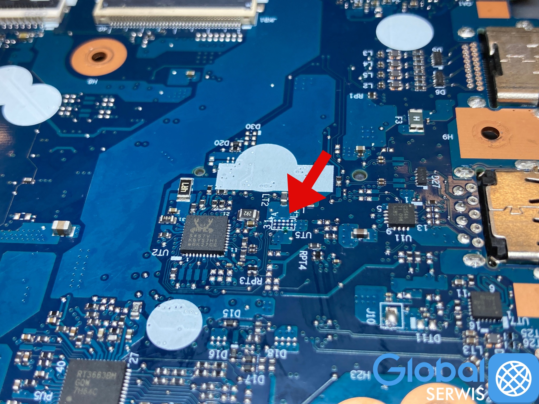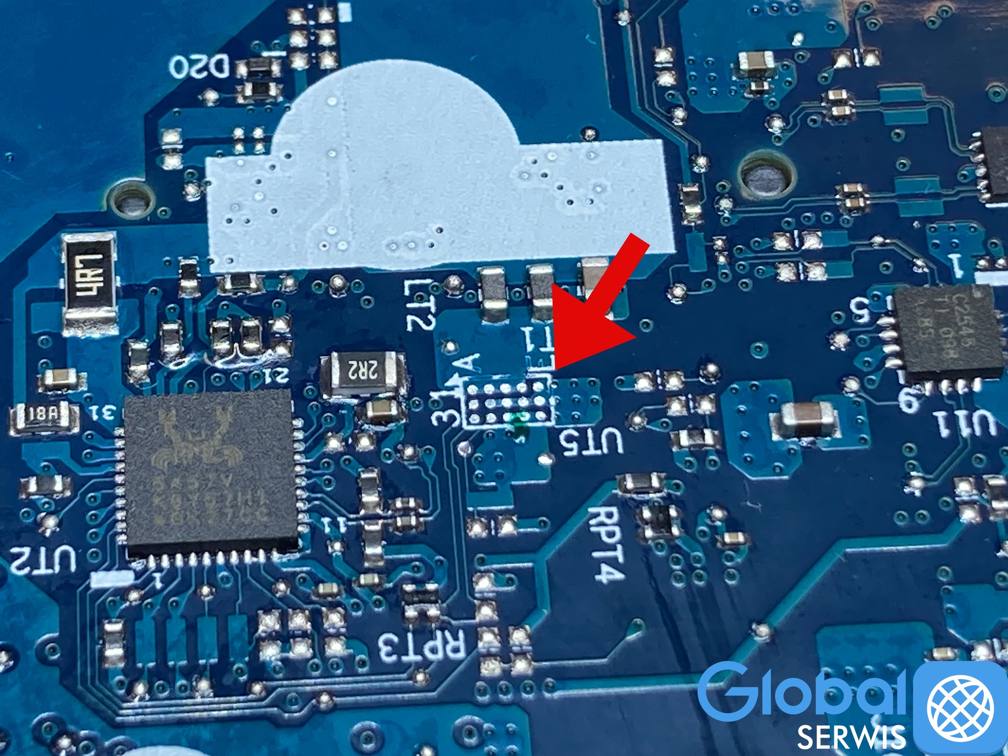Naprawa polegała na zlokalizowaniu i wymianie uszkodzonych elementów zasilania na płycie głównej.