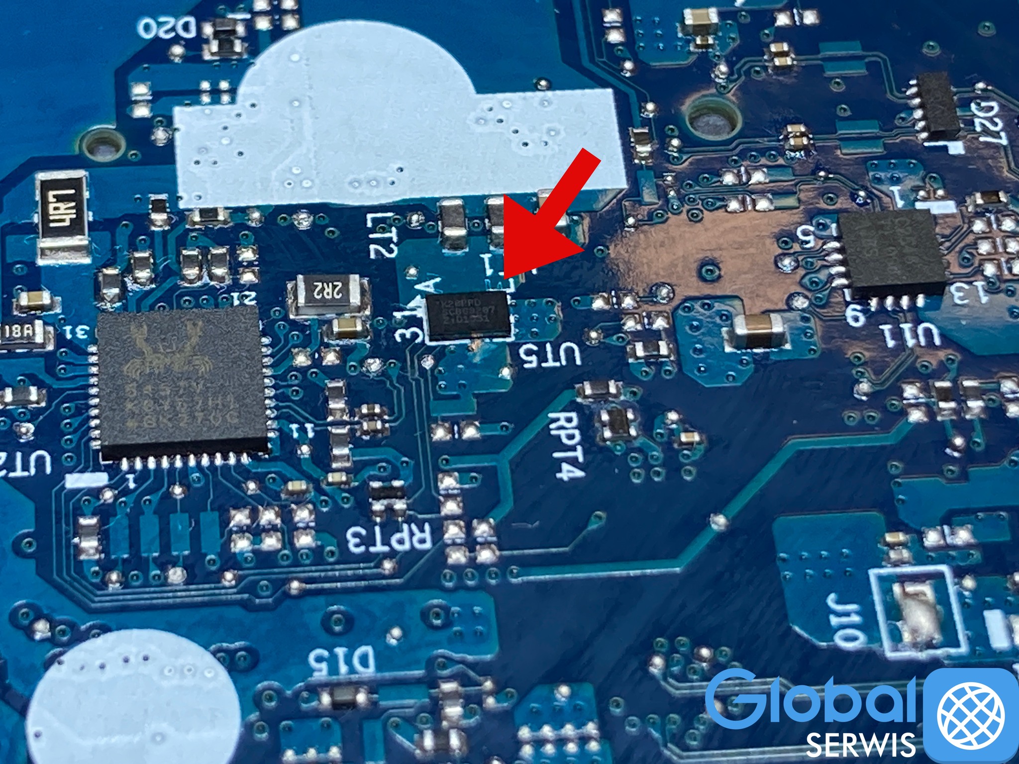 Uszkodzeniu uległ układ zasilania/zarządzania portami USB-C.