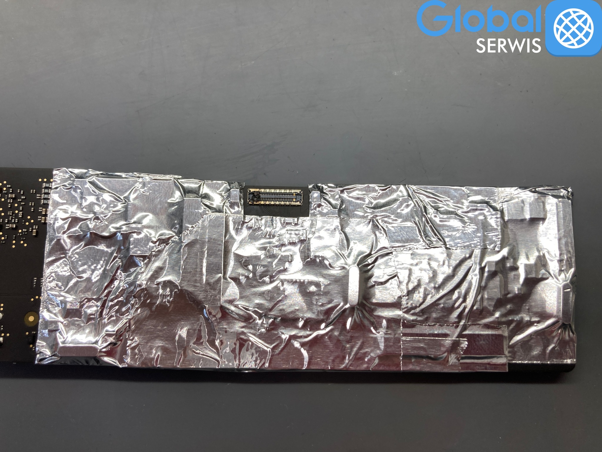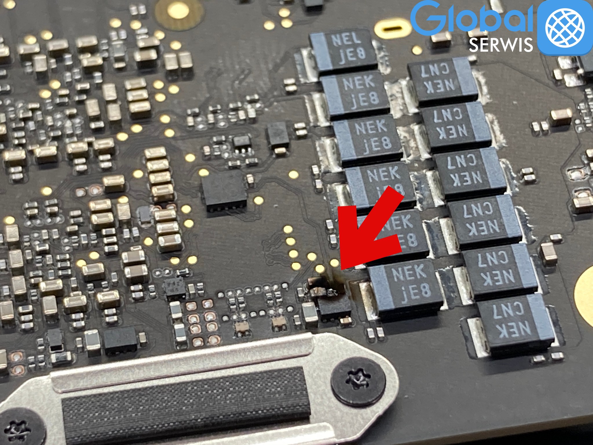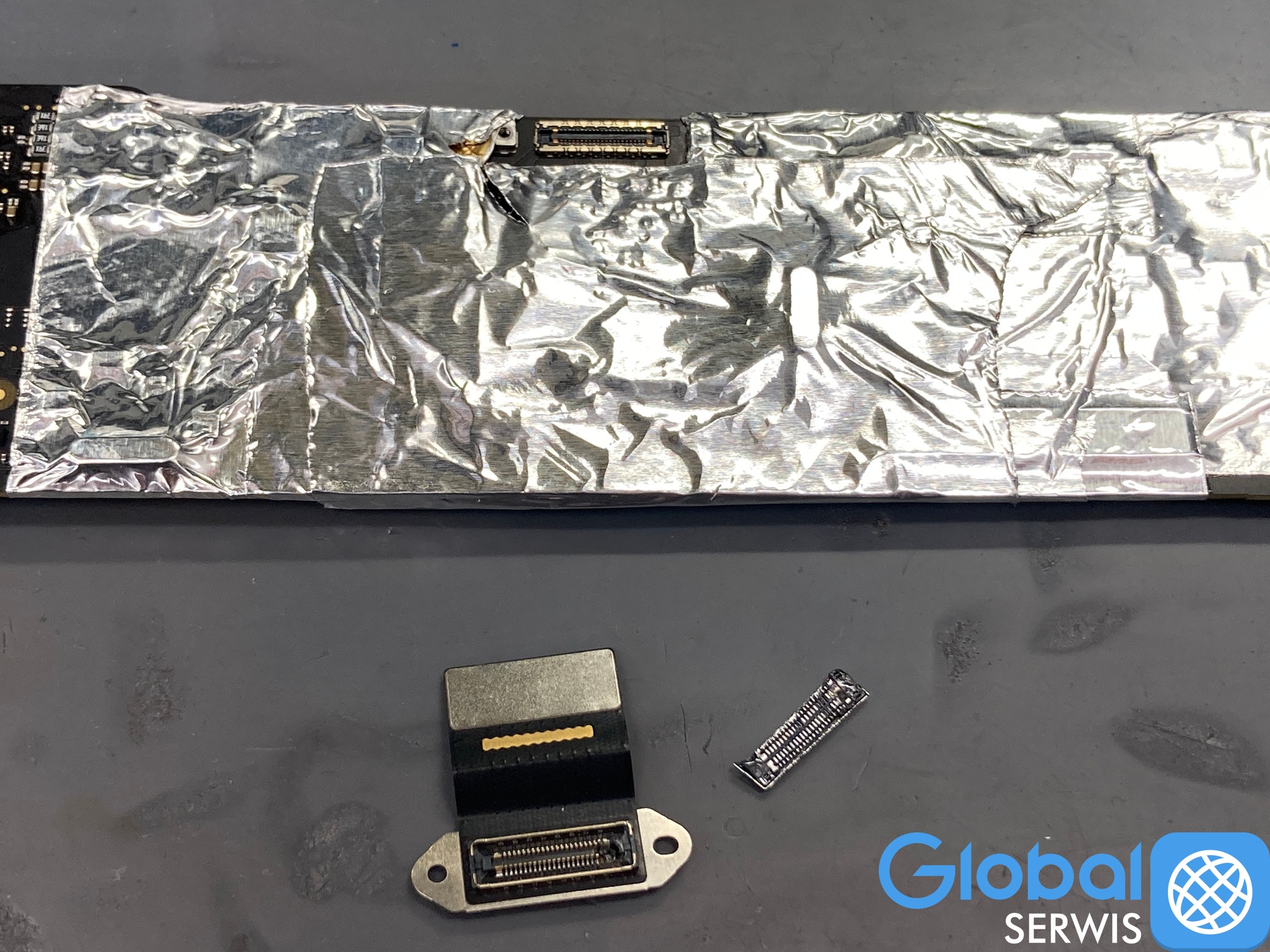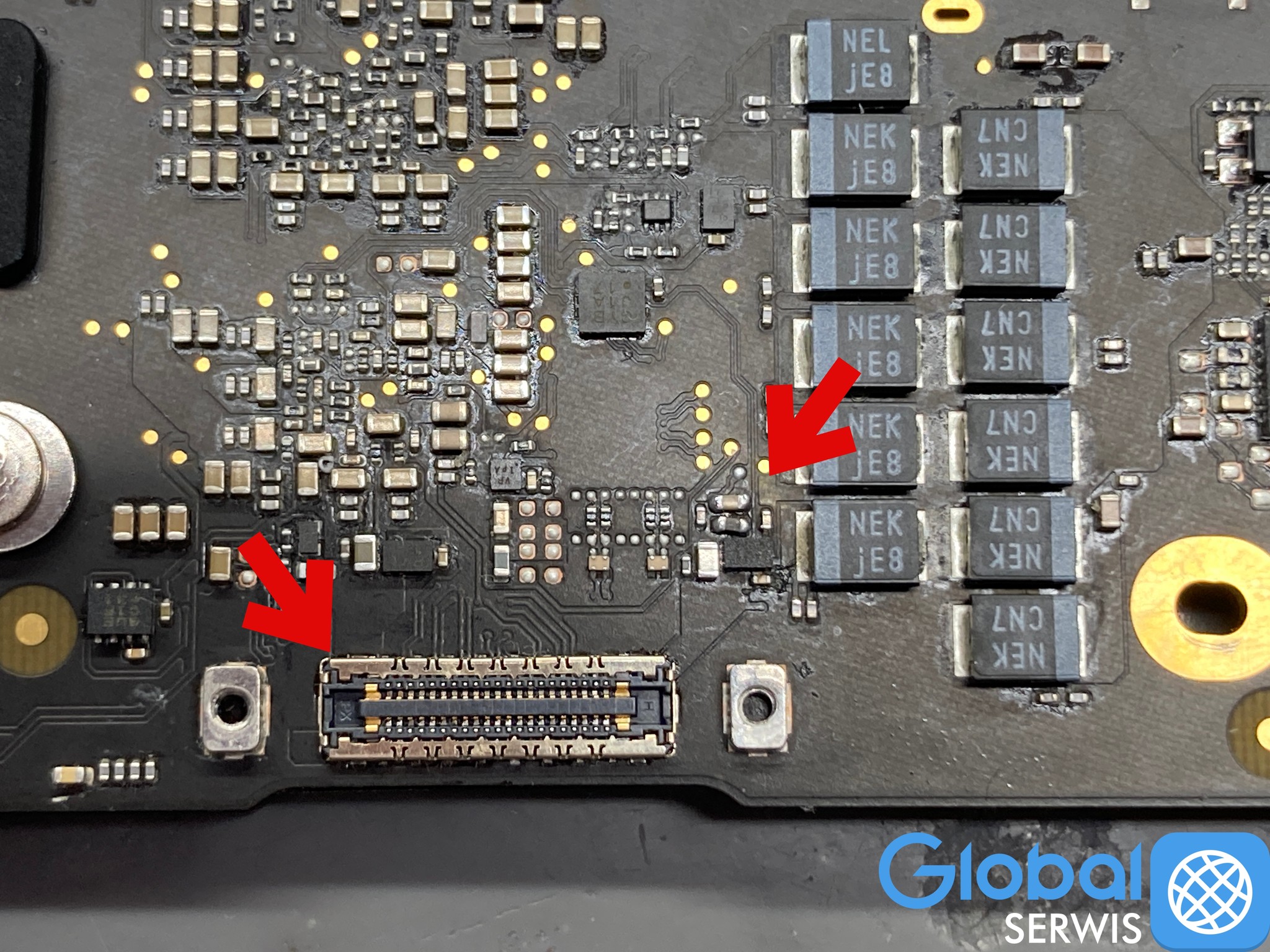 Diagnoza : Uszkodzenia na płycie głównej (spalone złącze LVDS, spalona taśma sygnałowa, uszkodzenia elementów zasilania matrycy oraz kamerki).