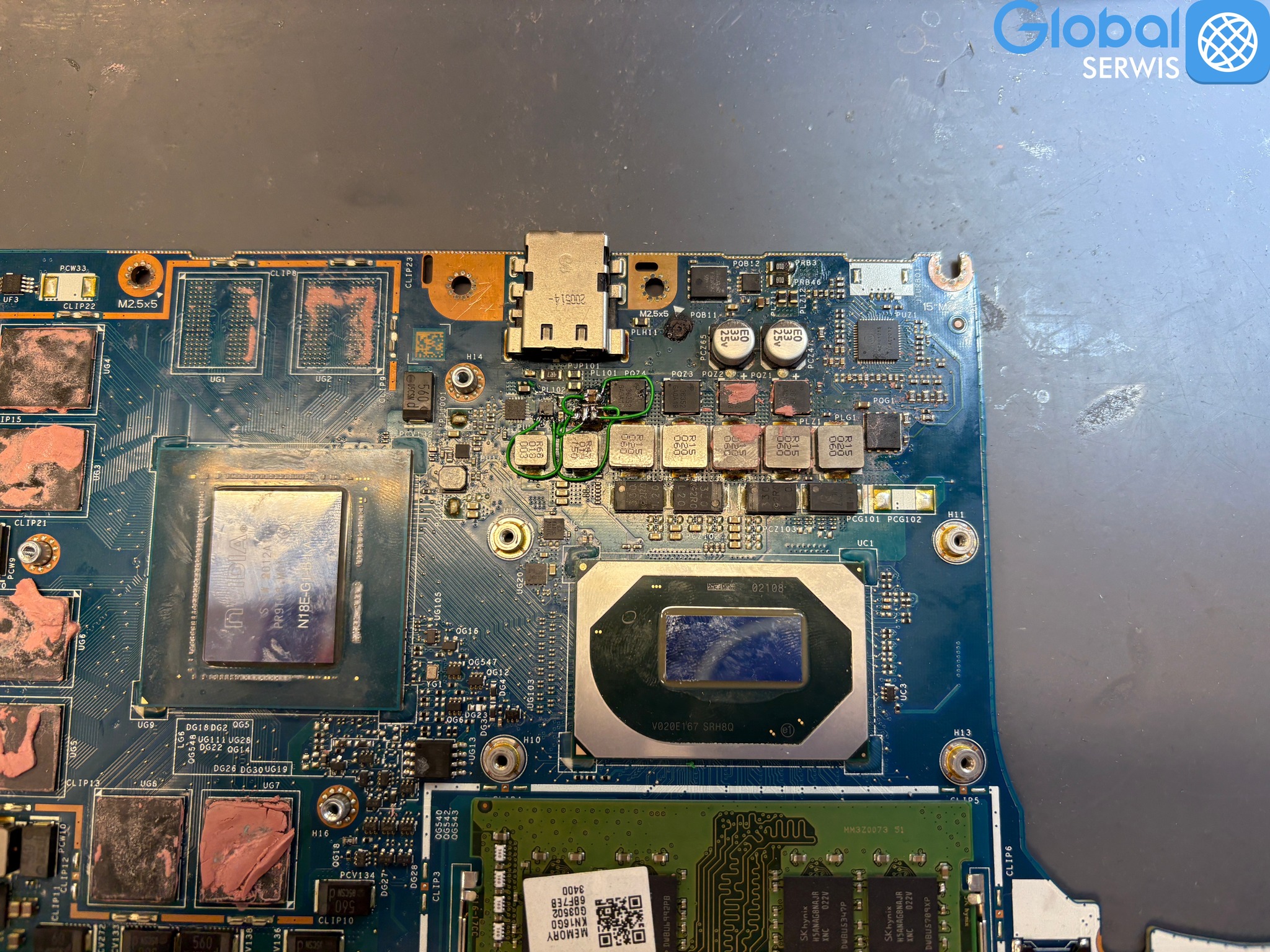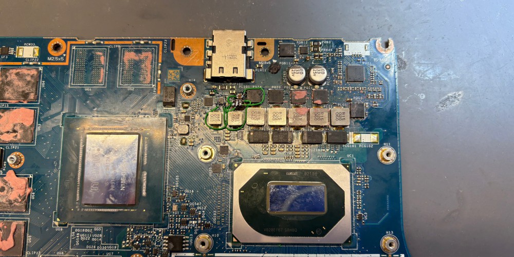 Tutaj mamy przykład laptopa dla graczy, który niestety miał problem z mocnym zwarciem w układach zasilania procesora.