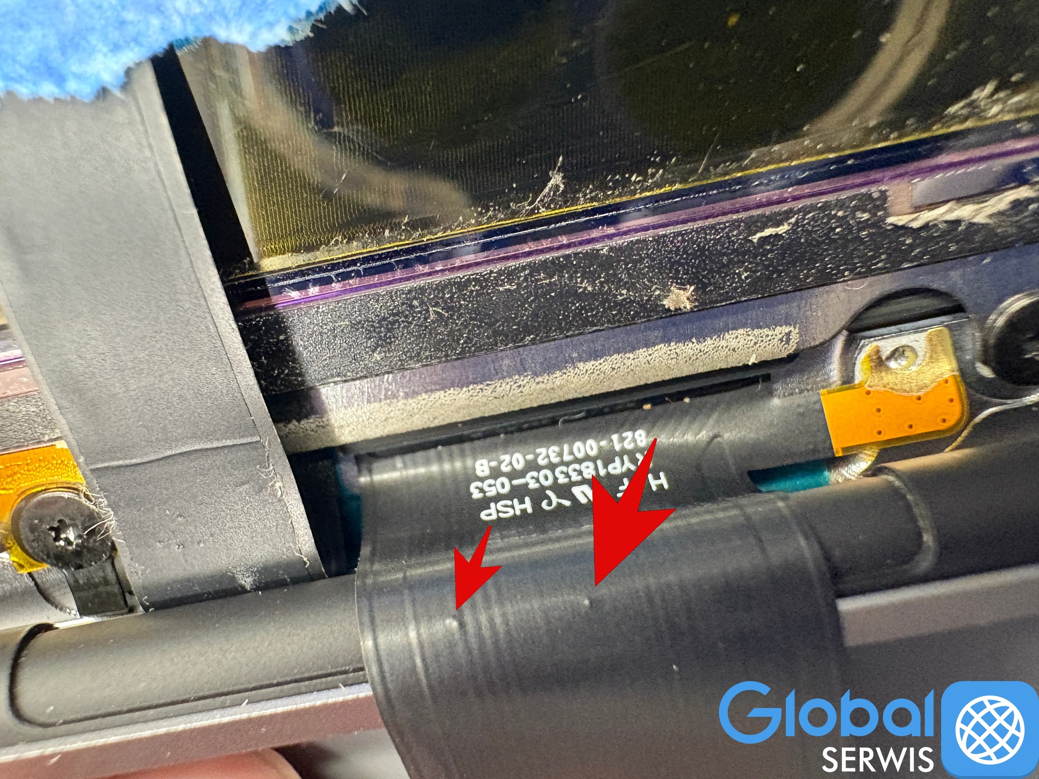 Niestety taśmy flex matrycy są bardzo delikatne i całkowicie nieodporne na uszkodzenia mechaniczne.
