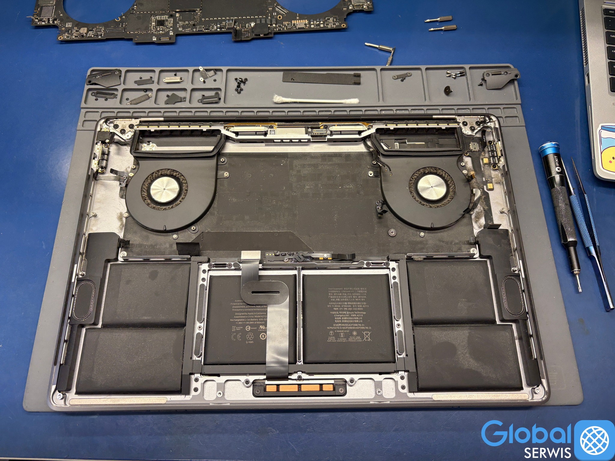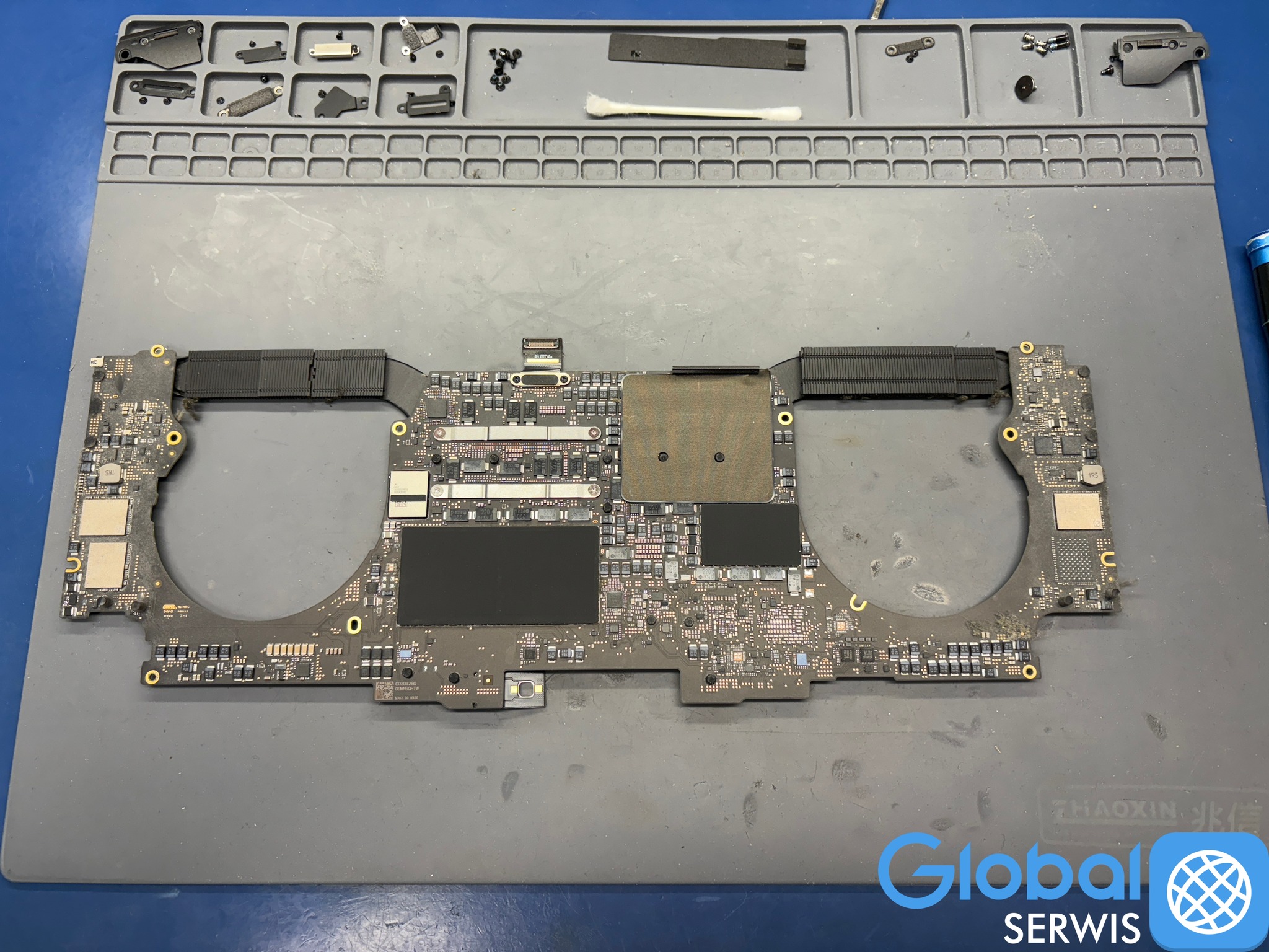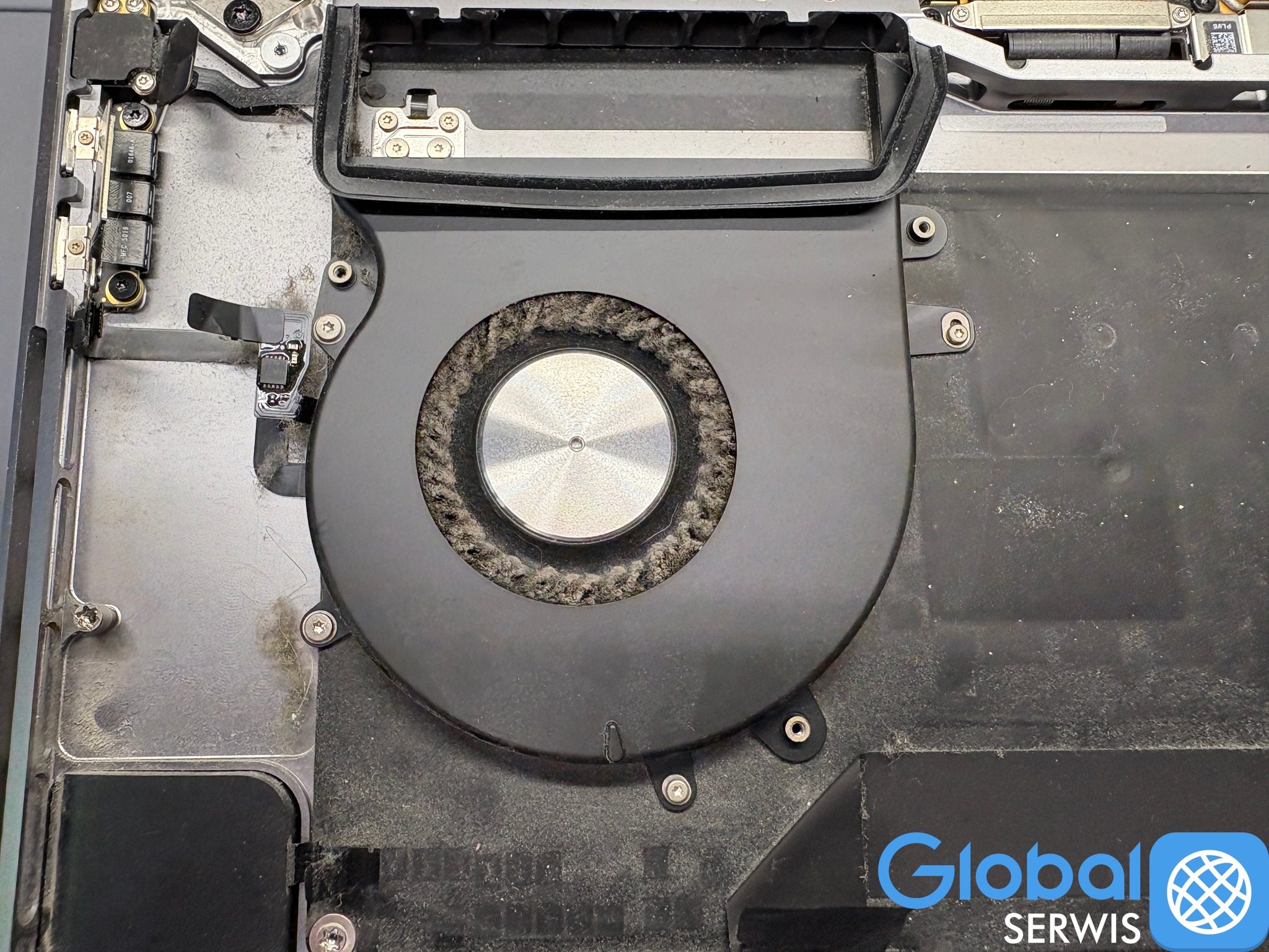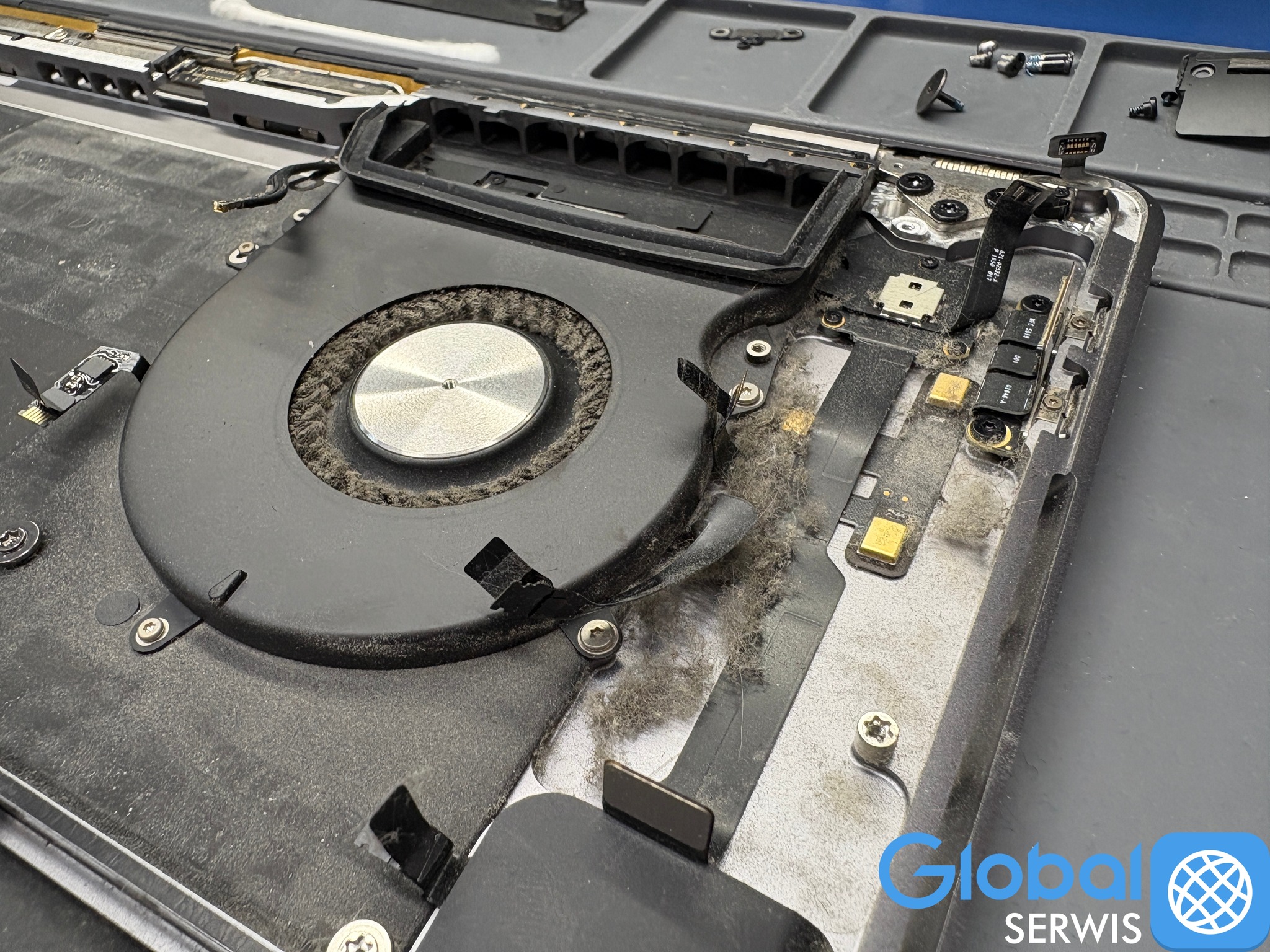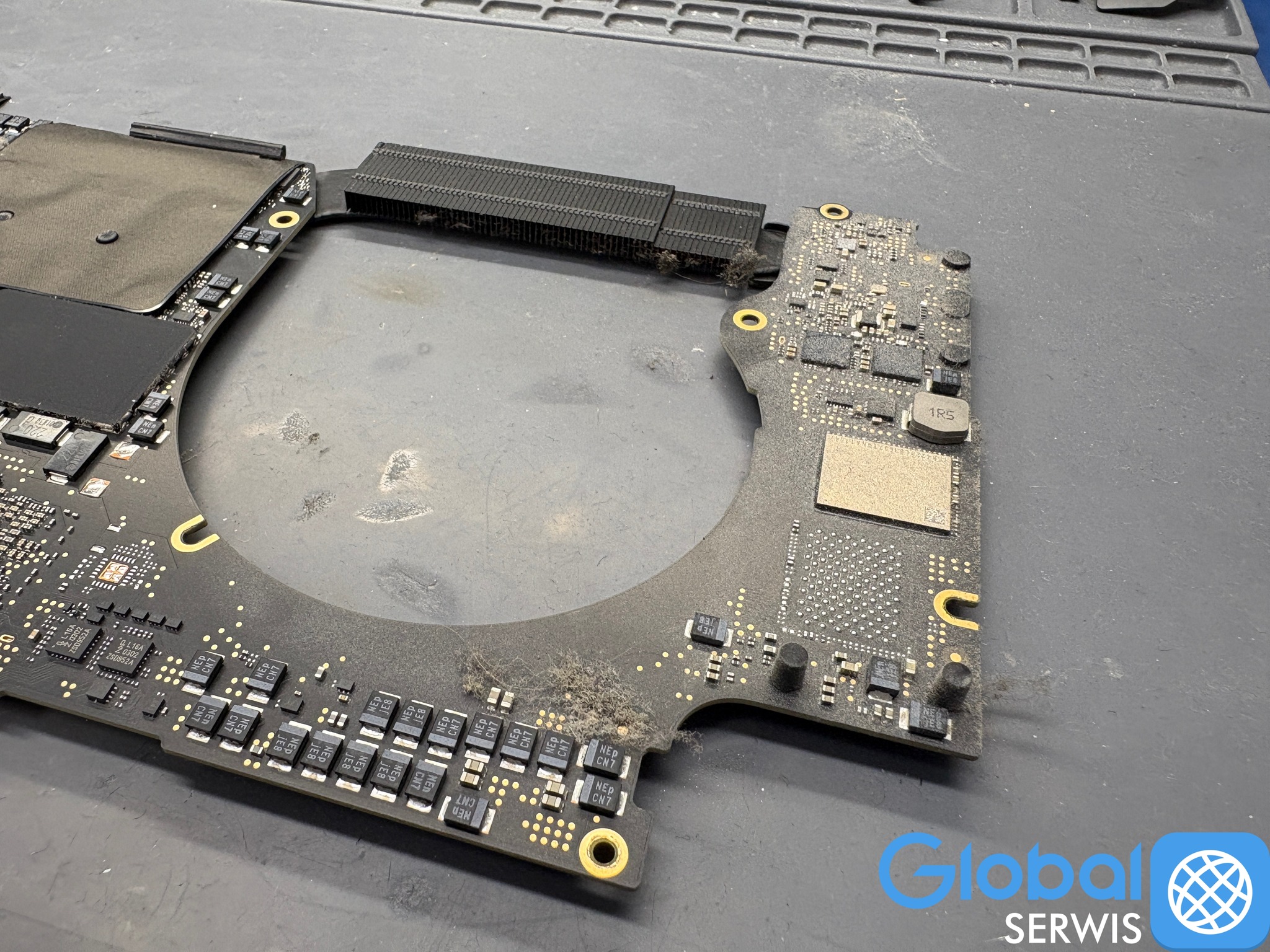 Jak widać na zdjęciach laptop jest mocno zanieczyszczony, pasty termo przewodzące na rdzeniach GPU oraz CPU mocno zaschnięte.