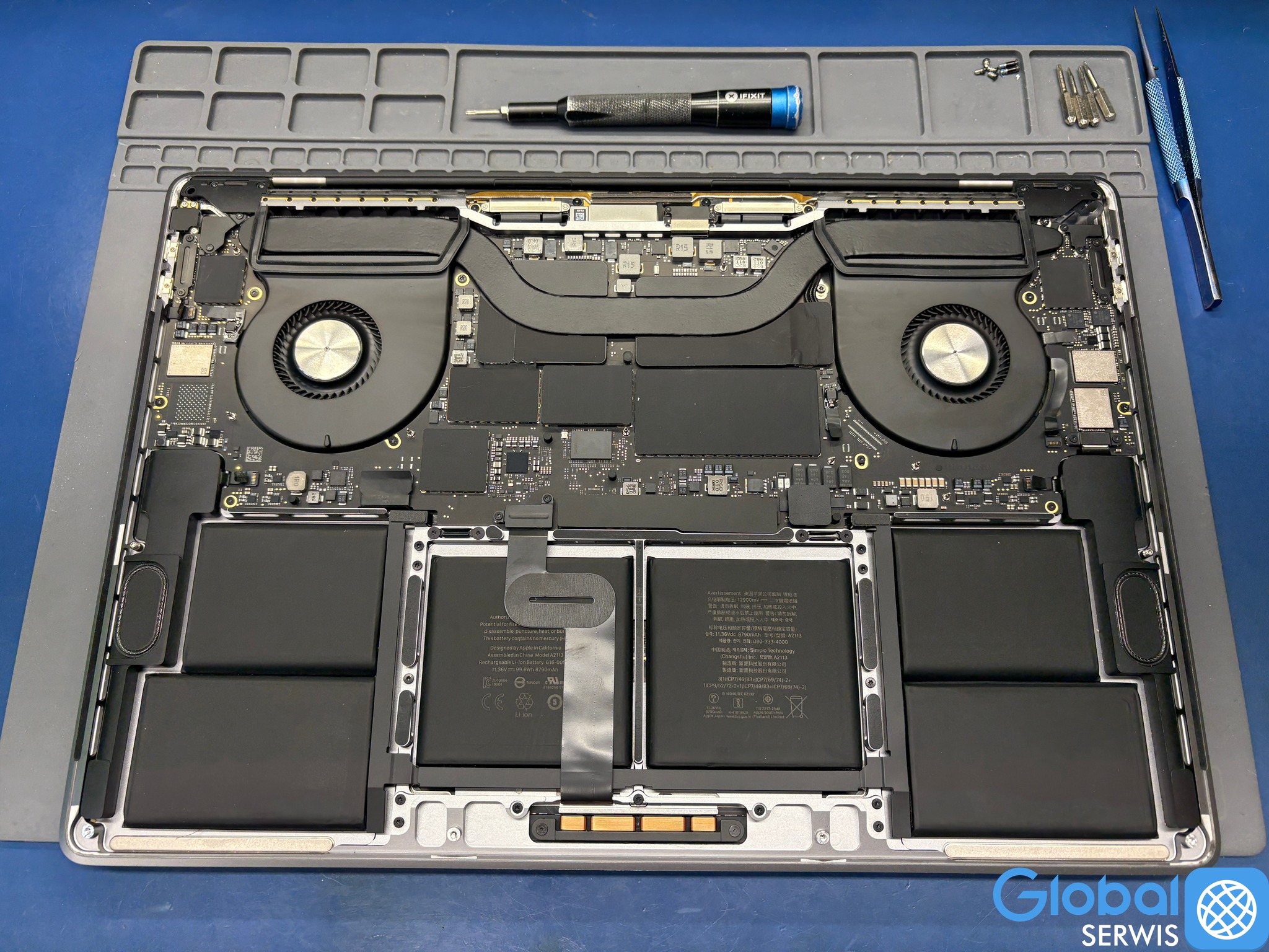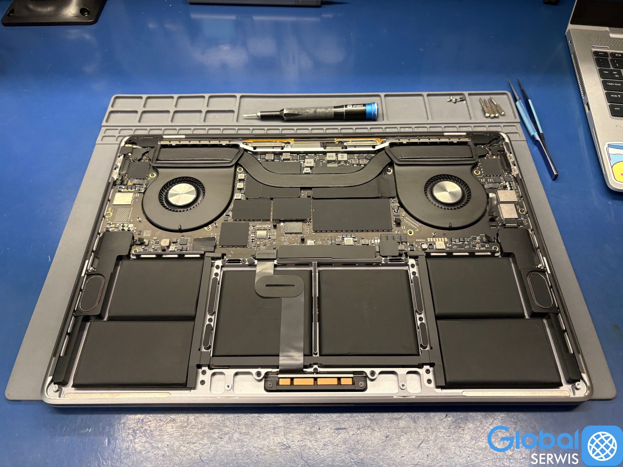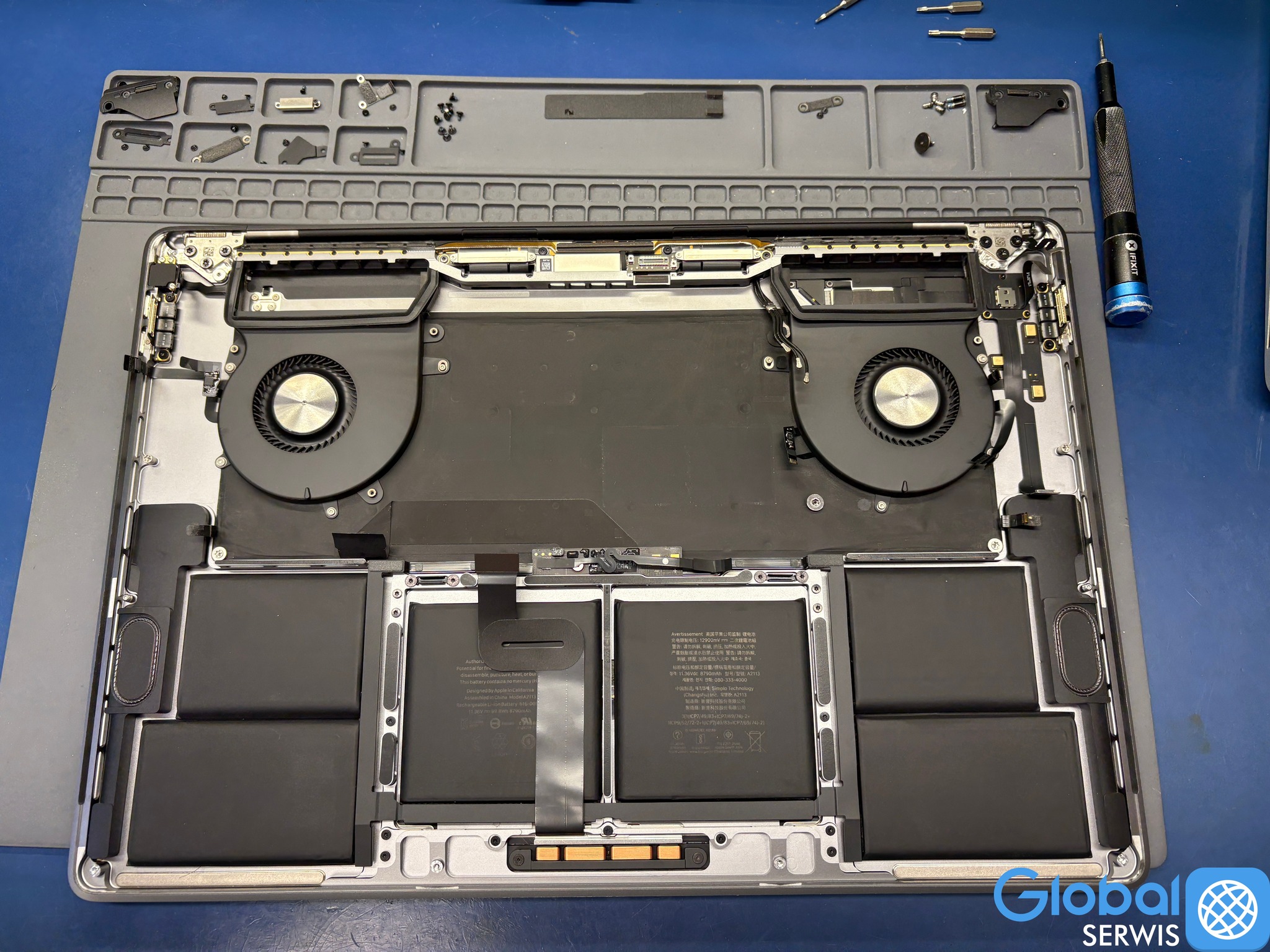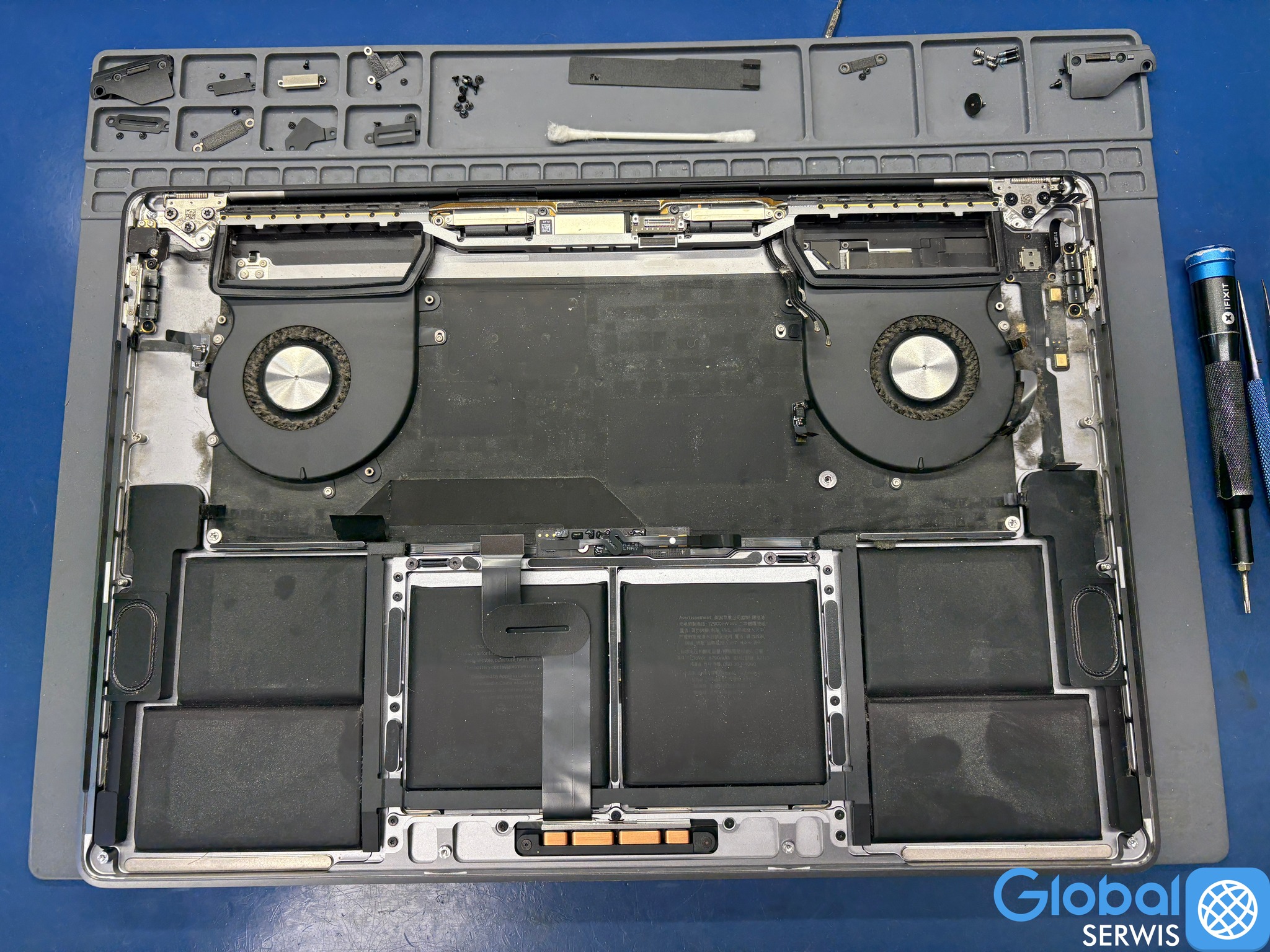 Jak widać na zdjęciach laptop jest mocno zanieczyszczony, pasty termo przewodzące na rdzeniach GPU oraz CPU mocno zaschnięte.