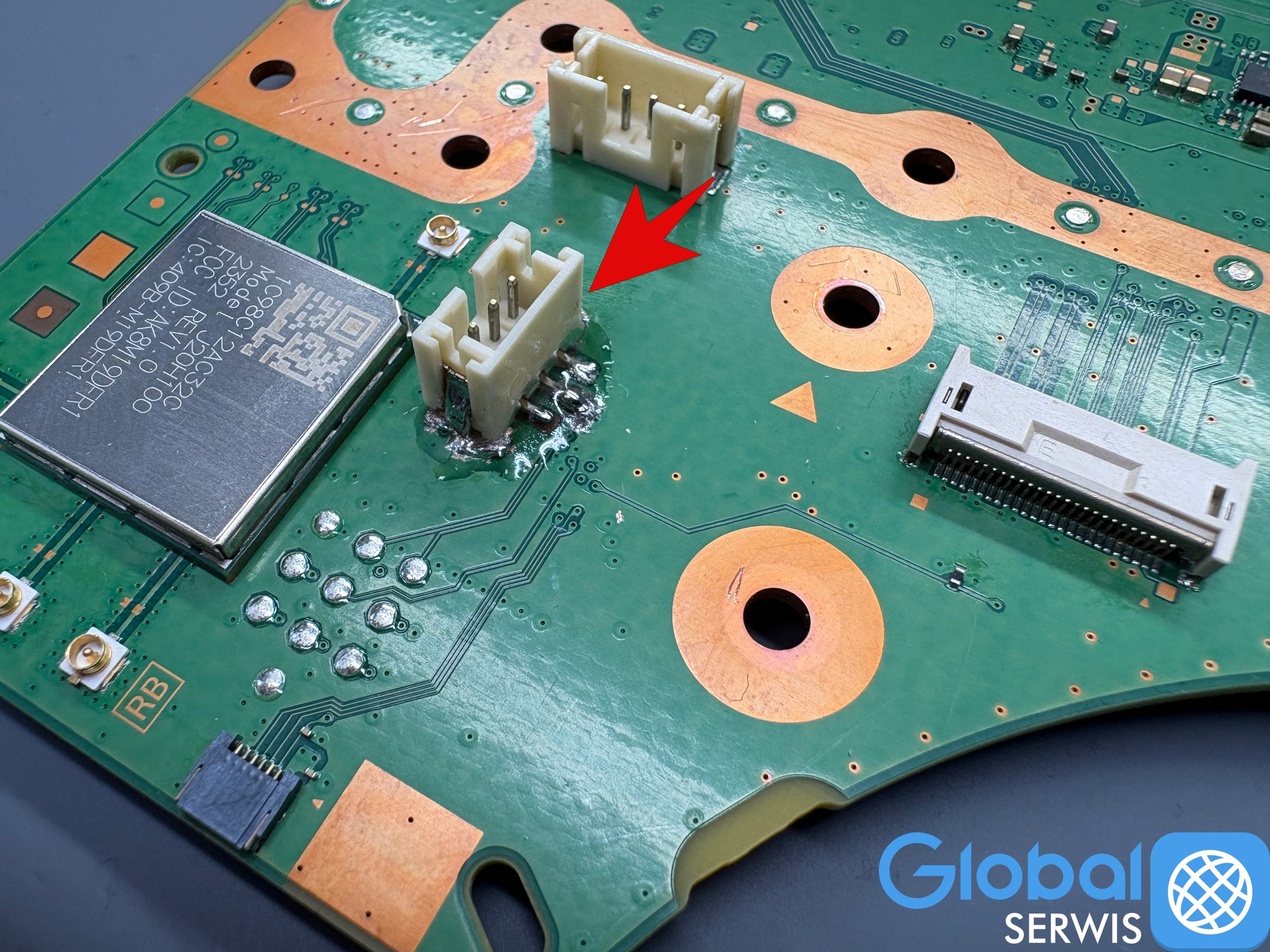 Po wyrwaniu złącza wentylatora zwarcie na linii PWM poszło na mostek konsoli w konsekwencji uszkadzając go.