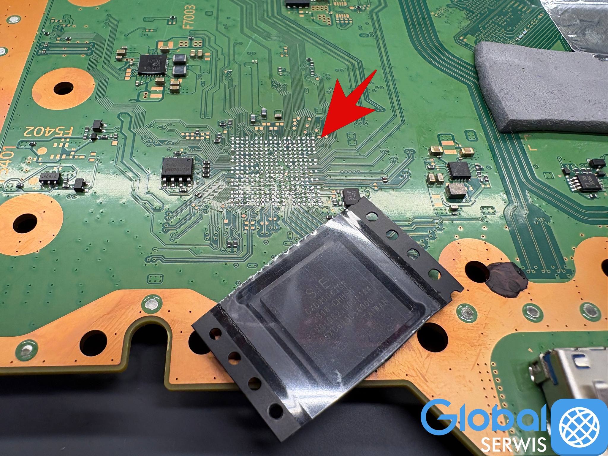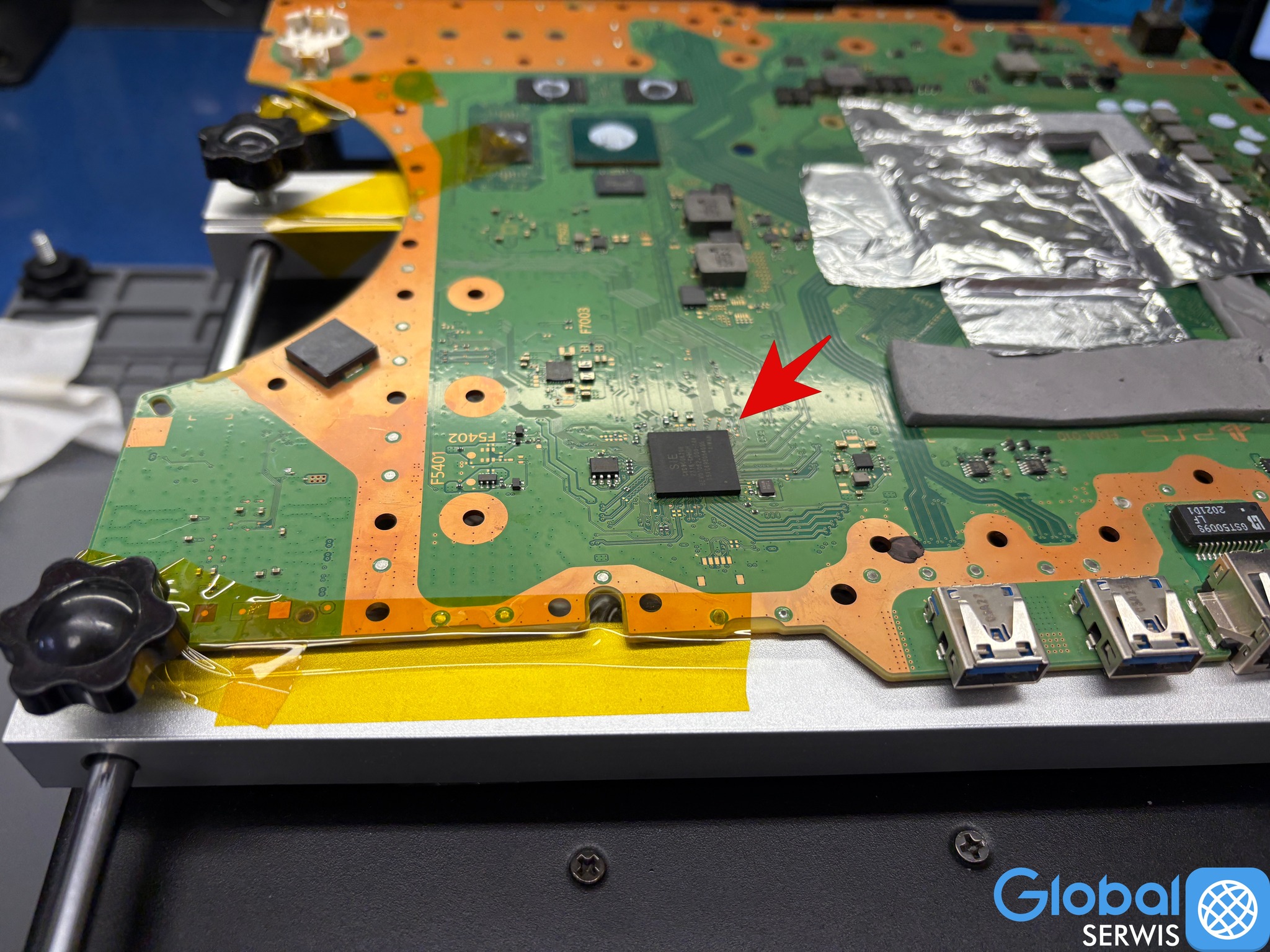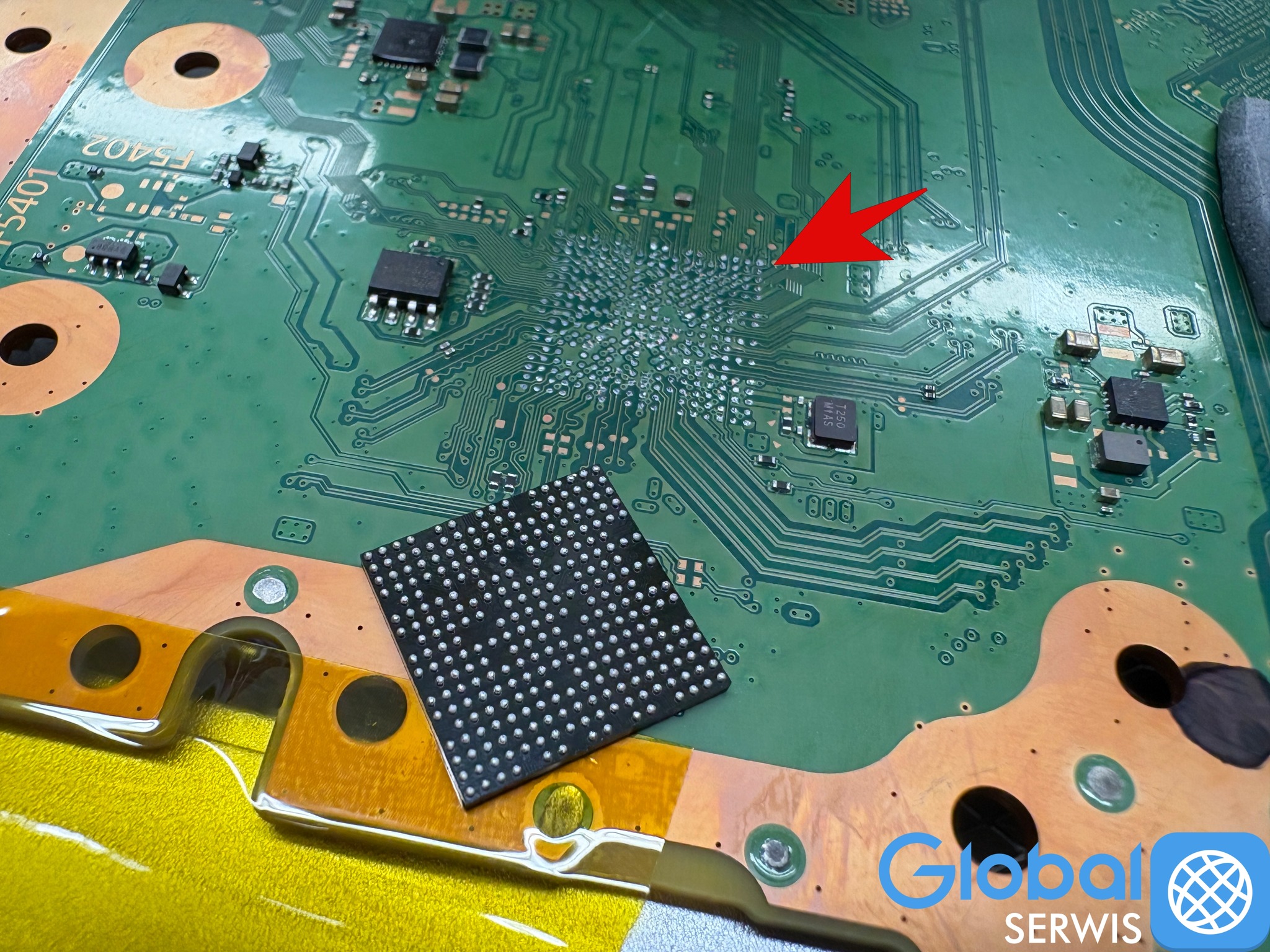 - wymiana uszkodzonego mostka lutowanego w technologii BGA (kulki cynowe).