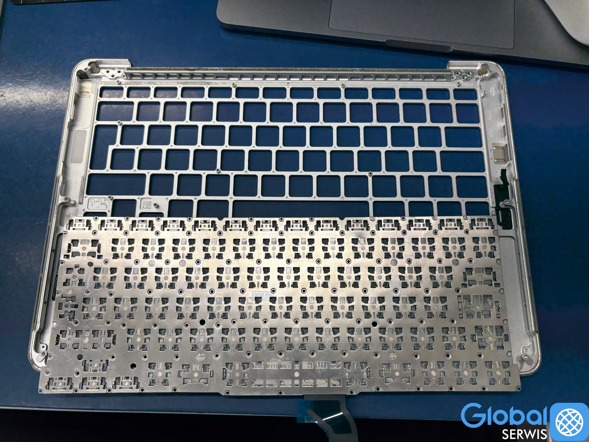 Klawiatura w tym modelu jest wbudowana w palmrest (górna część obudowy komputera) klawiatura fabrycznie jest zanitowana (aluminiowe nity).
