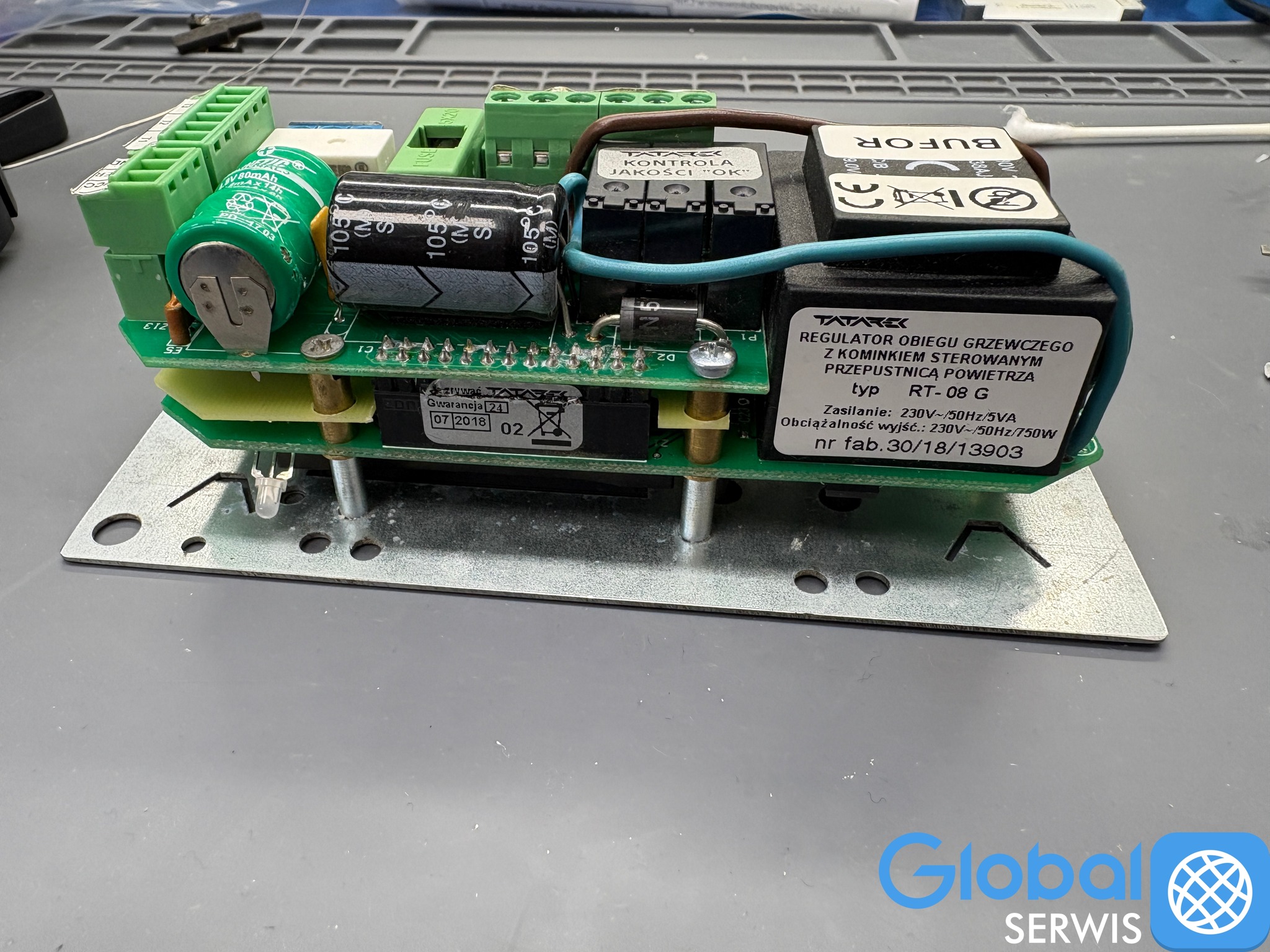 Co to za urządzenie ? - Sterownik RT-08 G to urządzenie sterujące z wyświetlaczem graficznym do obsługi układów grzewczych zasilanych z kominka z płaszczem wodnym, z regulacją dopływu powietrza do komory spalania za pośrednictwem przepustnicy powietrza.