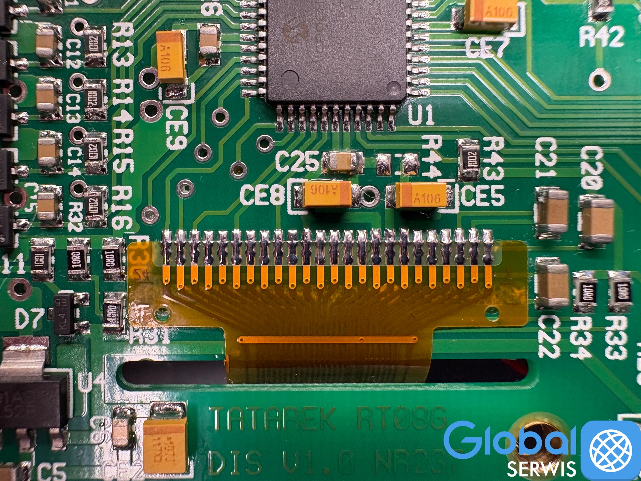 Naprawa wymagała lutowania bardzo delikatnej taśmy sygnałowej.